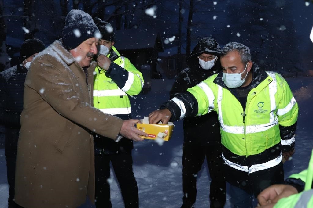 Ordu Büyükşehir Belediyesi Genel Sekreteri Coşkun Alp, Büyükşehir Belediyesi’nin Kabadüz ilçesindeki kar çalışmalarını yerinde inceledi. Fen İşleri Dairesi Başkanlığı’nın Yokuşdibi Mahallesi’nde bulunan yerleşkesini de ziyaret eden Genel Sekreter Alp, sahada çalışan ekiplere helva ikramında bulundu.