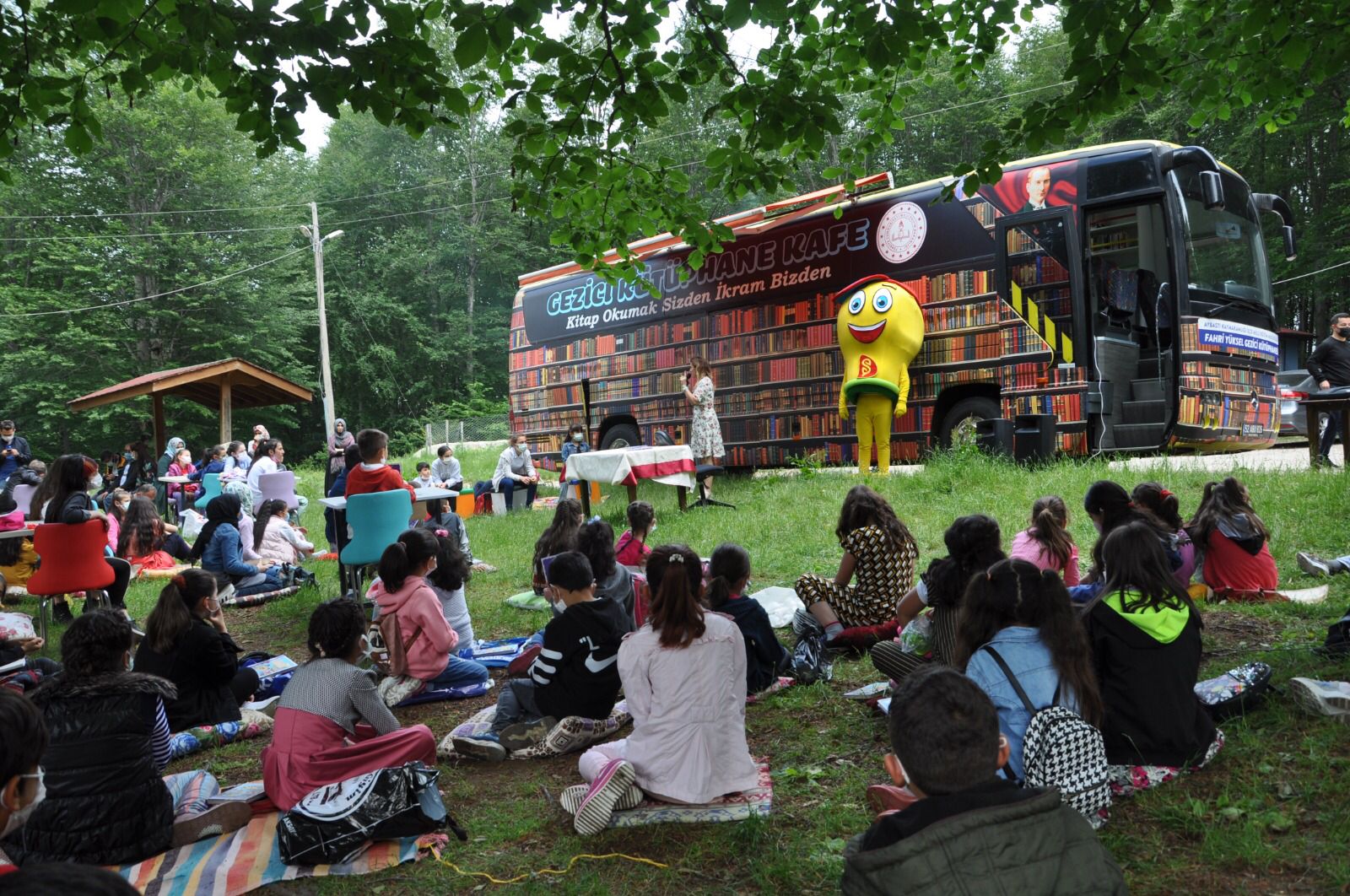 Aybastı ilçesindeki yaylada çocuklar, Kitaplar Masamıza Yazarlar Evimize’ projesi kapsamında gezici kütüphane ile buluştu.