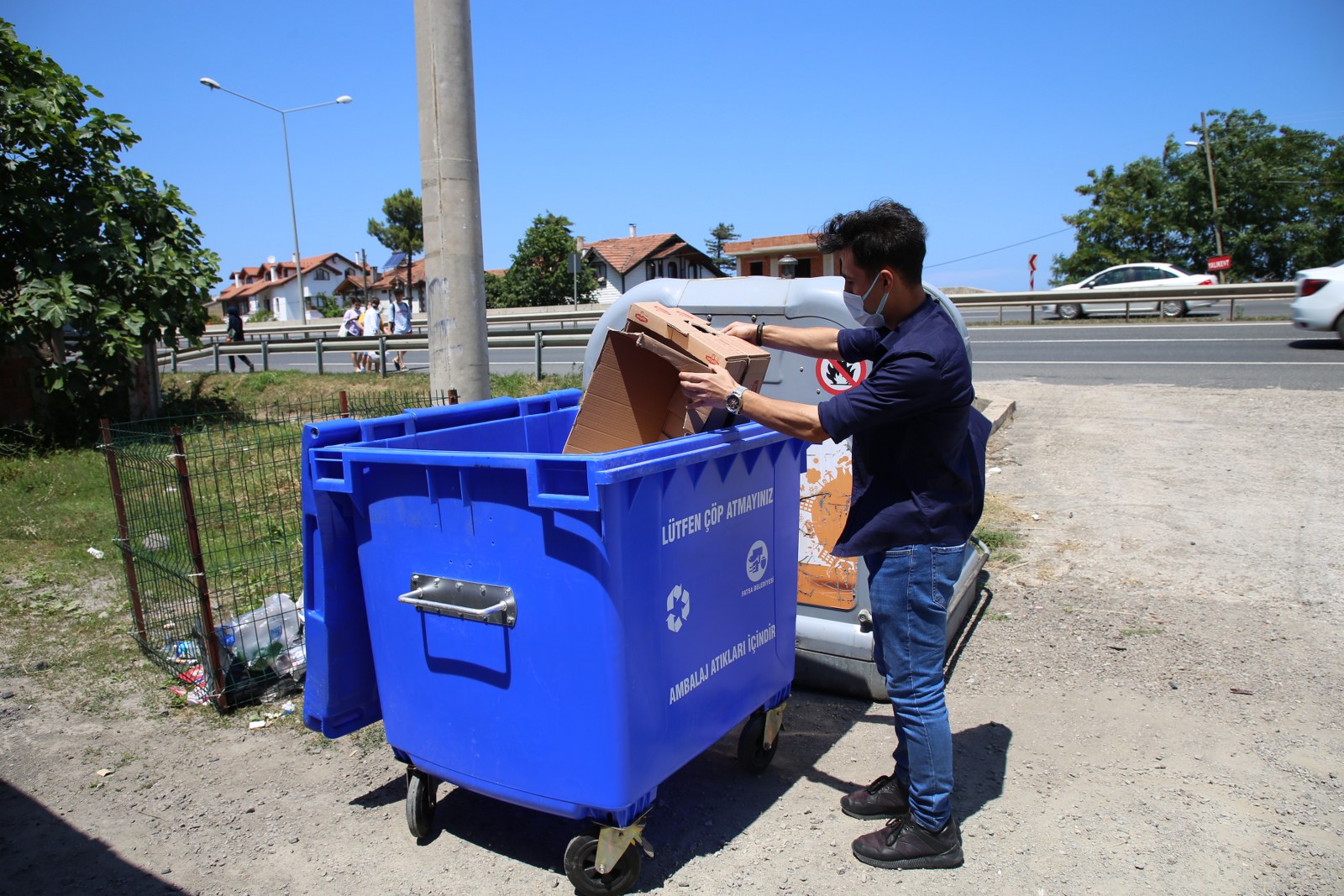 Bu çalışma ile Belediye Temizlik İşleri Müdürlüğü vatandaşların çöplerini yer altı ve yer üstü çöp konteynerlerinin içine, geri dönüşüm atıklarını ise mavi konteynerlere atmalarını istedi.