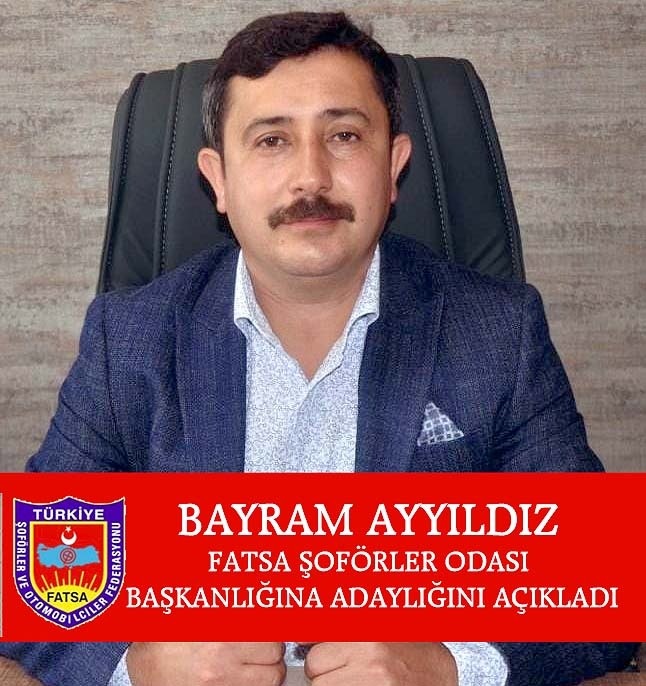 Fatsa SS. 12 Nolu Lise-Toki Motorlu Taşıtlar Hattı Kooperatifi Başkanı Bayram Ayyıldız Fatsa Şoförler ve Otomobilciler Odası Başkanlığına aday olduğunu açıkladı.