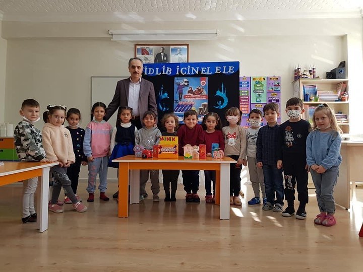 Minik yavrular bir araya getirdikleri toplamda 22.250 liralık yardımı İdlibdeki kardeşlerine göndermek üzere Kurs binasında İlçe Müftüsü Hamza BAYRAM’a teslim ettiler.