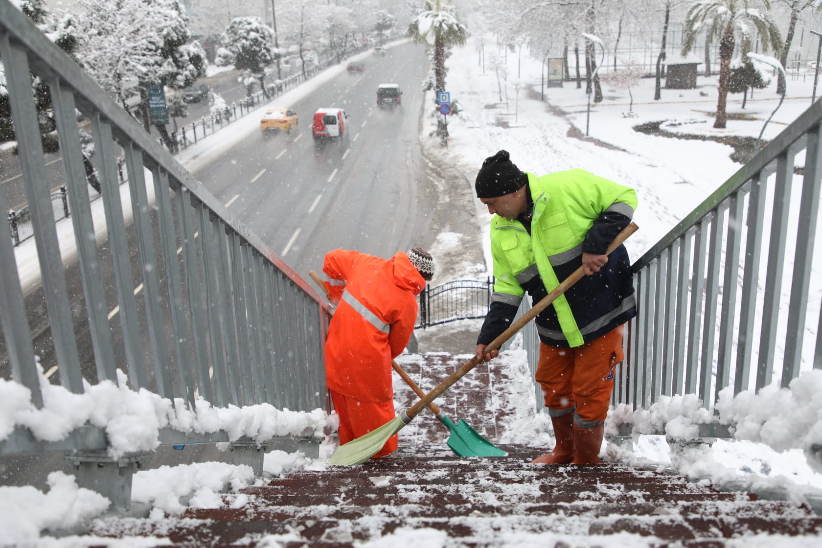 FATSA BELEDİYE BAŞKANI İBRAHİM ETEM KİBAR:“KAR ZORLUK DEĞİL, KEYİF OLSUN DİYE 7/24 SAHADAYIZ” Fatsa Belediyesi Temizlik İşleri Müdürlüğü yoğun kar yağışı nedeniyle vatandaşların yoğun olarak kullandığı sağlık kuruluşları ve ticari alanlarda herhangi bir kaza yaşamaması için kar küreme çalışması gerçekleştirdi. Fatsa Belediyesi Temizlik İşleri Müdürü Erdem Yuva 45 kişilik ekiple kar küreme çalışması yaptıklarını belirterek, “Kış mevsiminin bereketi ilkbaharın ilk ayı Mart ayında devam ediyor. Fatsa Belediyesi olarak kar küreme ekiplerimiz sahadalar. 45 kişilik ekiplerimiz ile birlikte devlet hastanesi, özel hastane, aile sağlığı merkezleri, Huzurevi ve eczaneler gibi halkımızın yoğun olarak kullanmak zorunda kaldığı bölgelere öncelik vererek çalışmalarımızı sürdürüyoruz. İnsanlarımız şu anda çok fazla dışarı çıkmıyor ama mecburiyetten hasta olanlar, eczaneye gitmek zorunda olanlar ticaret alanlarında ihtiyacı olanlar için bu çalışmayı yapmak zorundayız. Hava tahminlerine göre yarın öbür gün don olayı görünüyor. Kar birikintilerinin buzlanmaya dönüşmemesi için çalışmalarımızı sürdürüyoruz.” dedi. Sabahın erken saatlerinden itibaren kar küreme çalışması yaptıklarını ifade ederek, “İşimiz zor ama vatandaşlarımızın mağdur olmaması için katlanmak zorundayız.” diye konuştular.