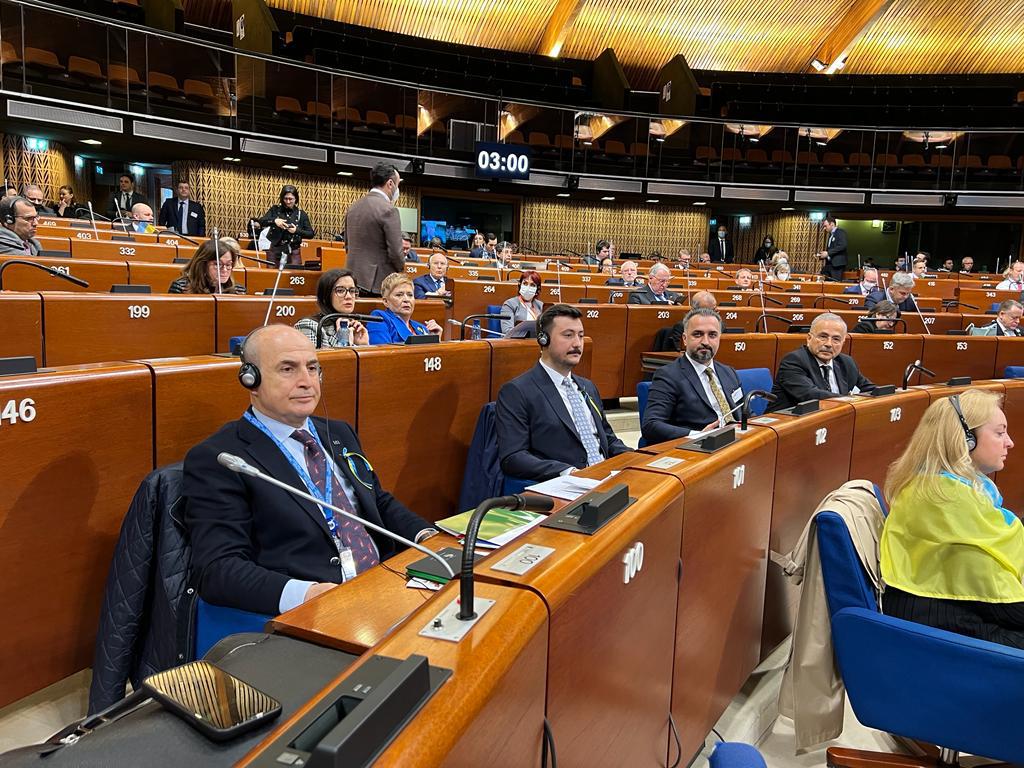 Genel Kurul Toplantısı öncesinde gerçekleştirilen Grup Toplantısında söz alan Başkan Güler, Ukrayna’da yaşanan drama kayıtsız kalmadı. Ukrayna Delegasyonu üyeleri ile yan yana oturan Başkan Güler, konuşmasında yaşananlara karşı başta Avrupa olmak üzere dünyanın net bir tavır ortaya koyması gerektiğini söyledi.