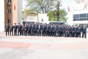 İlçe Emniyet Müdürlüğü tarafından hükümet konağı önünde Atatürk Anıtı’na çelenk koyulmasının ardından saygı duruşunda bulunuldu ve İstiklal Marşı okundu.
