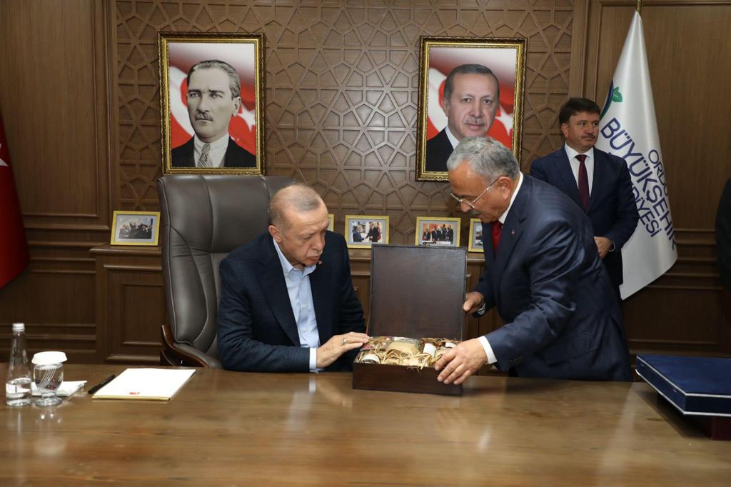 Ordu Büyükşehir Belediyesi ziyaretinde Büyükşehir Belediyesinin çalışmalarını yakından inceleyen Cumhurbaşkanı Recep Tayyip Erdoğan, Başkan Güler’in çalışmalarına tam not verdi.