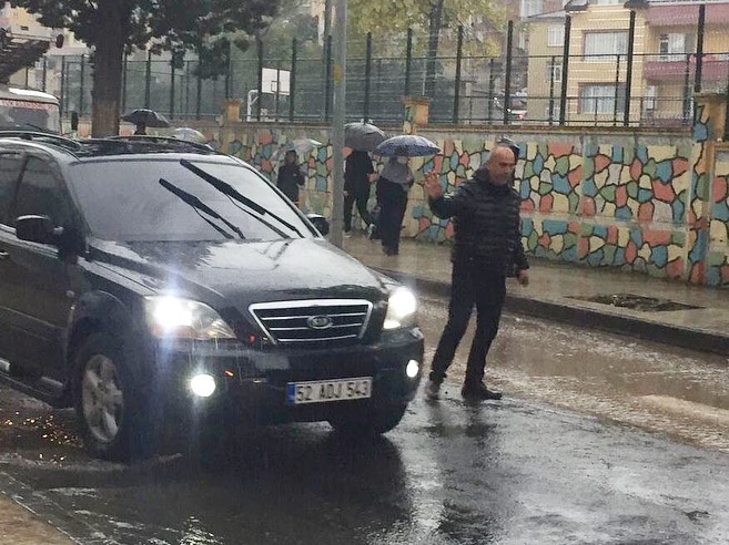 Fatsa Sakarya Ortaokulu memuru Mehmet Kansu, her gün öğrencilerin güvenle okula girmesi için trafiği keserek öğrencilerin okula girmesini sağlıyor.