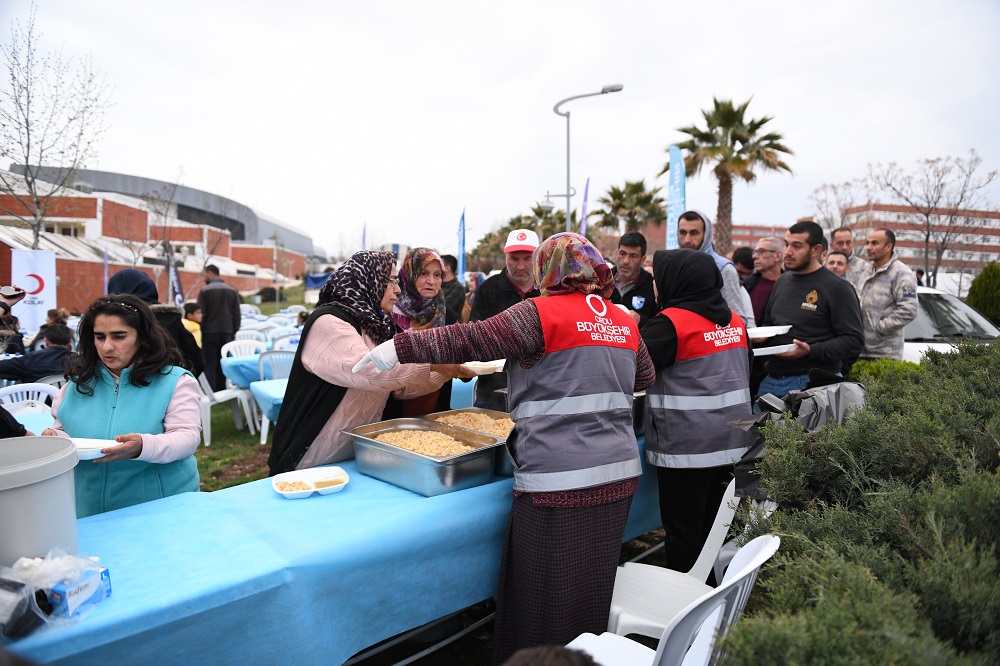Depremzedelerin Ramazan’ı rahat geçirmesi adına Adıyaman Üniversite Yerleşkesi önünde 6 bin kişinin sorumluluğunu alan Ordu Büyükşehir Belediyesi ekipleri, ilk iftar organizasyonunu gerçekleştirdi.