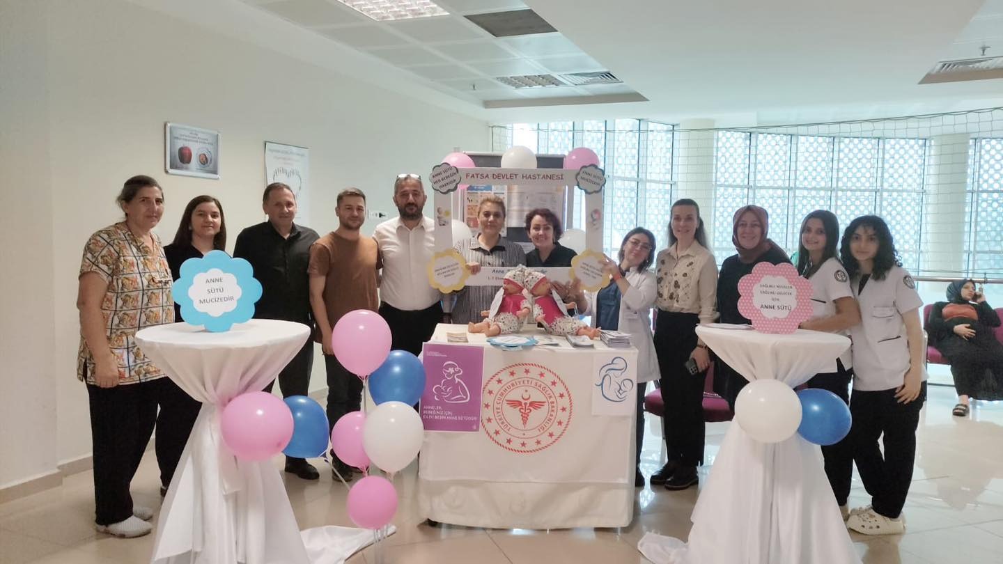 Fatsa Devlet Hastanesinde 1-7 Ekim Emzirme haftası münasebetiyle, “Anne sütünün teşviki ve Bebek Dostu sağlık kuruluşları programı” kapsamında hastanemizde, hasta ve ziyaretçilerine yönelik bilgilendirme standı kurulmuştur. Sağlık çalışanlarımıza ve stajyer öğrencilerimize hastanemiz konferans salonunda eğitim yapıldı.